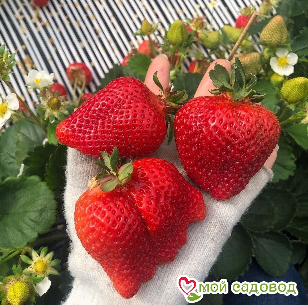 Вкус очень сладкий с кислинкой и карамельной ноткой, с насыщенным земляничным ароматом, дегустационная оценка — 4,8 из 5 баллов, мякоть светло-красного цвета, плотная, сочная, но не водянистая, без хруста, средняя масса плодов — 18–35 г, максимальный вес — 50 г.
